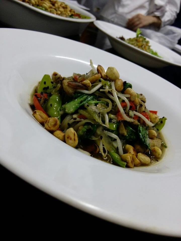 Wok Thai de frango aromatizado com azeite de gengibre e sal fitoterápico aromatizado com coentro e pimenta preta.